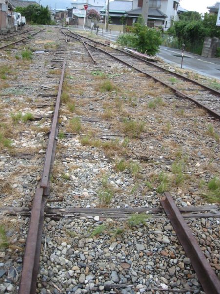 .JPG) | 場所:(旧)日高川駅 列車が来なくなってから何年も経過するが、線路の汚れは当時のまま・・・。 風流ですなぁ ( ´∀`) |