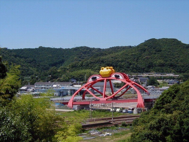 .jpg) | 場所:印南町 おまけ かえる橋です。なんで蛙なのか不明ですww 町おこしの一環で総工費9億3,500万らしいです・・・。ジュル ホシィ。賑わっているか不明w あまり人を見かけないんでw しかも、R42から奥まったところにあるんで気がつかないで通り過ぎる場合が多いw 画像は数年前のもの。 |